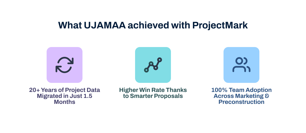 UJAMAA now uses ProjectMark as the definitive pipeline view, eliminating misalignment between business development, marketing, and estimating.